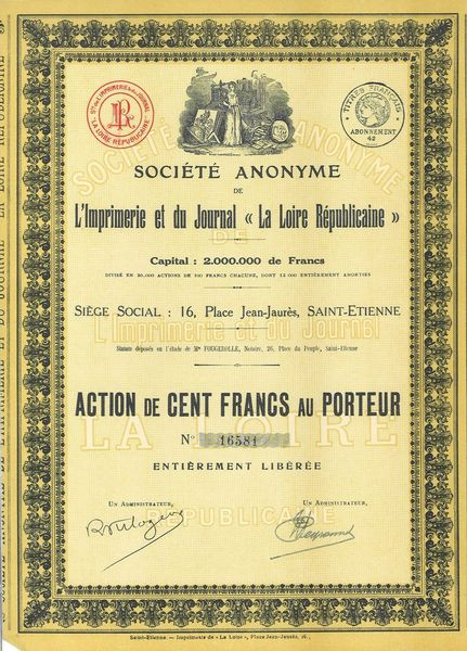 S.A. de L'Imprimerie et du Journal "La Loire Républicaine" (capital 2 000 000 F)