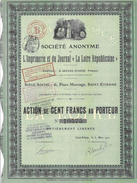 S.A. de L'Imprimerie et du Journal "La Loire Républicaine" (capital 1 200 000 F)