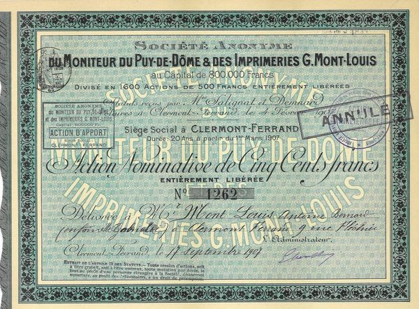 S.A. du Moniteur du Puy-de-Dôme et des Imprimeries G. Mont-Louis (Act Nomin)