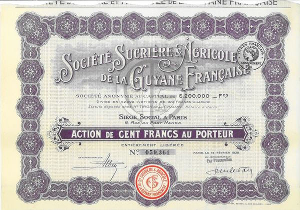 Sté Sucrière & Agricole de la Guyane Française (Act 100 F)