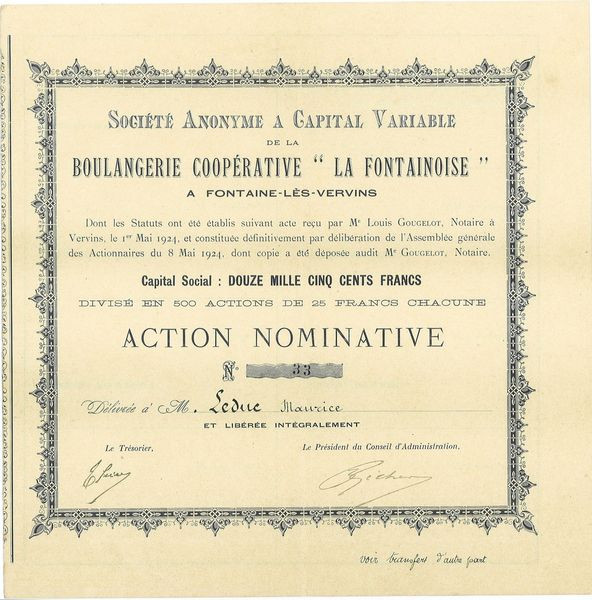 S.A. à Capital Variable de la Boulangerie Coopérative "La Fontainoise" à Fontaine-lès-Vervins