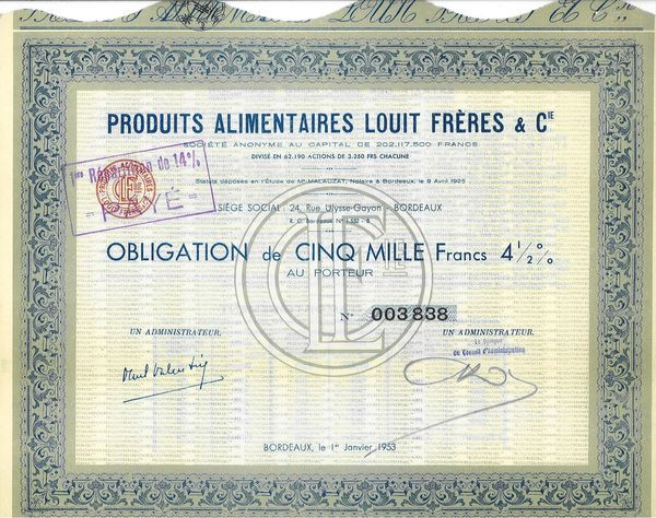 Produits Alimentaires Louis Frères & Cie (Obl)