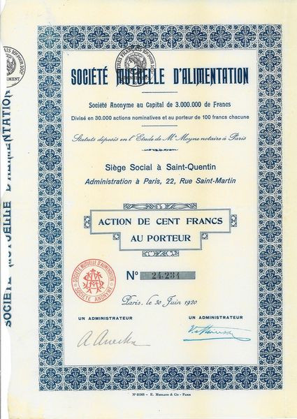 Sté Mutuelle d'Alimentation (1920)
