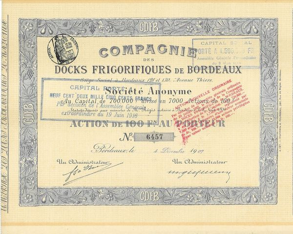 Cie des Docks Frigorifiques de Bordeaux (Act 100 F)