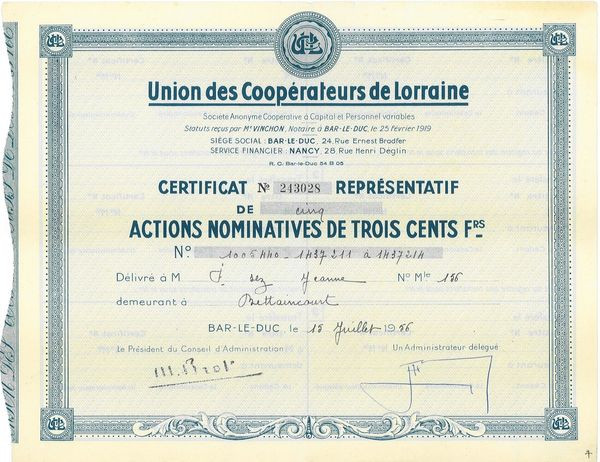 Union des Coopérateurs de Lorraine (Act Nomin 300 F)