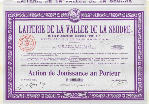 Laiterie de la Vallée de la Seudre - Anc Ets Morineaud Frères & Cie (capital 1220000 Frs - Jouiss)