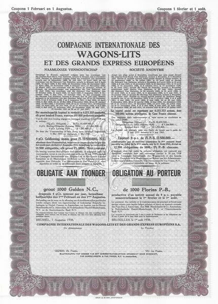 Cie Internationale des Wagons-Lits et des Grands Express Européens (Obl 1000 Florins P.-B.) (blanquette)