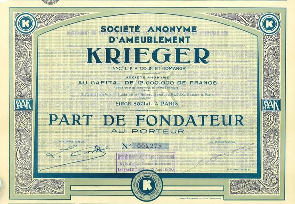 S.A. d'Ameublement Krieger (Anc L.P.A. Colin et Domange) (PF)