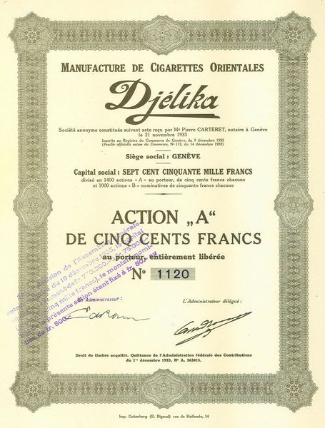 Manufacture de Cigarettes Orientales Djélika (Act)