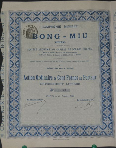 Cie Minière de Bong-Miû (Annam) (Act O)