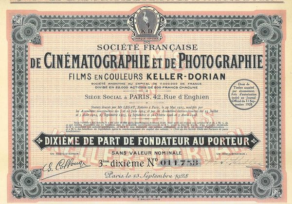 Sté Française de Cinématographie et de Photographie Films en Couleur Keller-Dorian (3 10ème de PF)