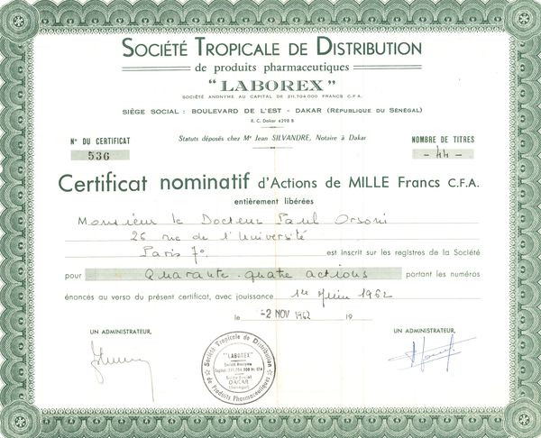 Sté Tropicale de Distribution de Produits Pharmaceutiques "Laborex" (CN Act 1000F CFA) Blanc