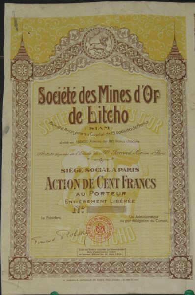 Sté des Mines d'Or de Litcho (Act 100 F) (blanquette)