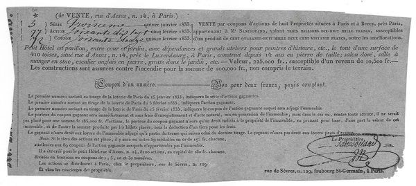 Vente par coupons d'actions de Huit Propriétés situées à Paris et à Bercy