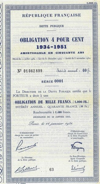 Obligation 4 % 1934 - 1951 (Obl 1000 F)