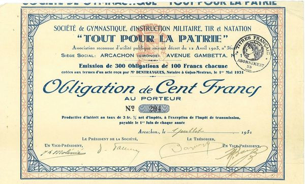 Sté de Gymnastique. D'Instruction Militaire. Tir et Natation "Tout Pour la Patrie"