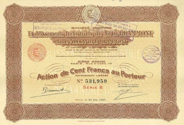 S.A. des Ets Indus. De E.-C. Grammont et de Alexandre Grammont (Act 100 F - Série B)