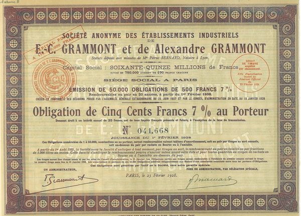 S.A. des Ets Indus. De E.-C. Grammont et de Alexandre Grammont (Obl 500 F 7 % 1928)