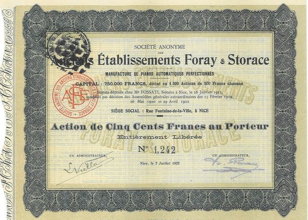 S.A. des Anc Ets Foray & Storace - Manufacture de Pianos Automatiques Perfectionnés