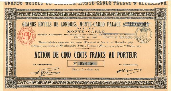 Grands Hôtels de Londres. Monte-Carlo Palace & Alexandra (S.A.H.L.M.A.)