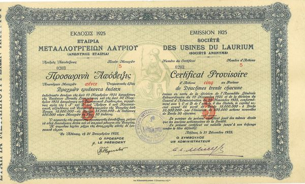 Sté des Usines du Laurium (Emission 1925)