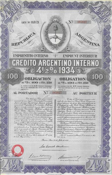 Credito Argentino Interno 4 1/2 % 1934 (Obl 100 $ Mex)