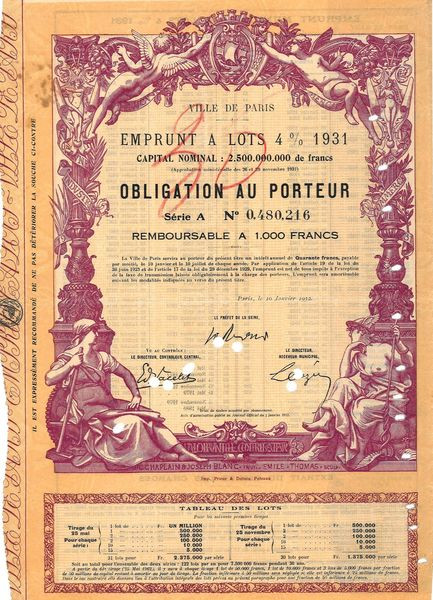 Ville de Paris Emprunt à lots 4 % 1931 (marron)