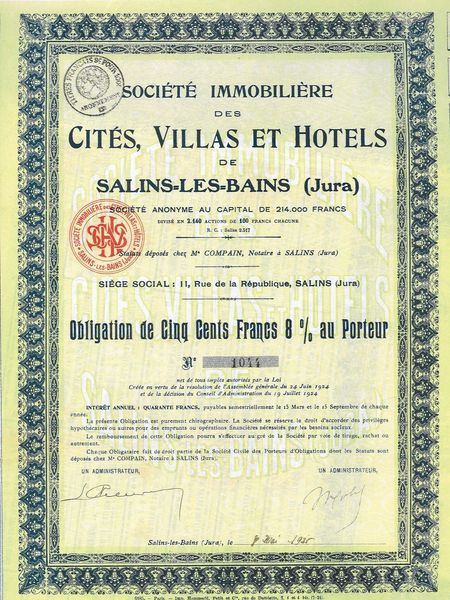 Sté Immobilière des Cités. Villas et Hôtels de Salins-les-Bains (Jura) (Obl)