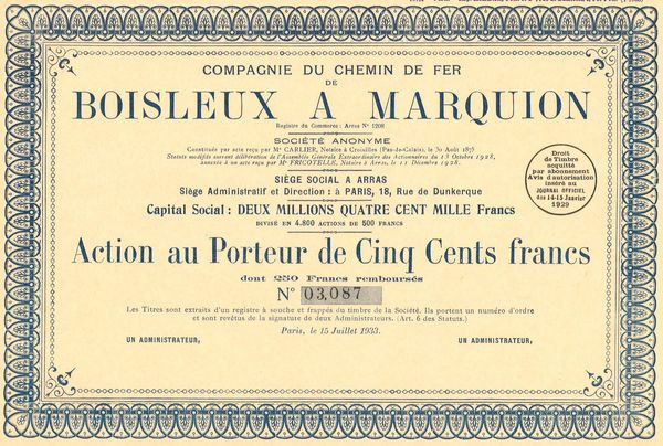 Cie du Chemin de Fer de Boisleux à Marquion (blanquette)