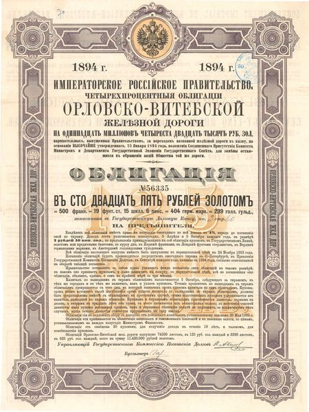Obligation 4 % du Chemin de Fer d'Orel-Vitebsk