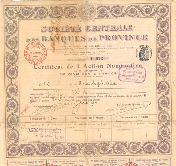 Société Centrale des Banques de Province (Certif 1 Act Nomin)