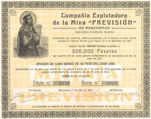 Cia Explotadora de la Mina "Prevision" de Mequinenza (Bons 50 Pesetas)