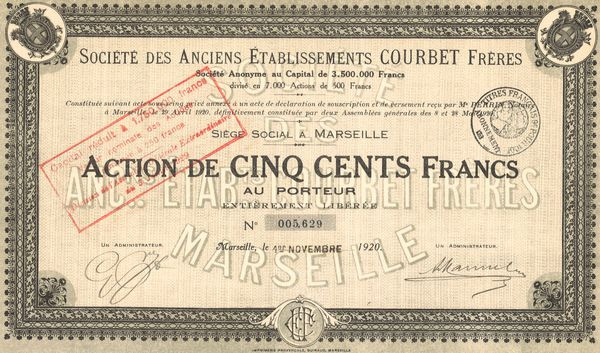 Sté des Anciens Etablissements Courbet Frères (Act 500 F)