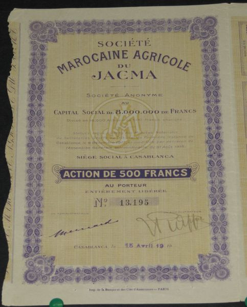 Sté Marocaine Agricole du Jacma (Capital 8 millions)