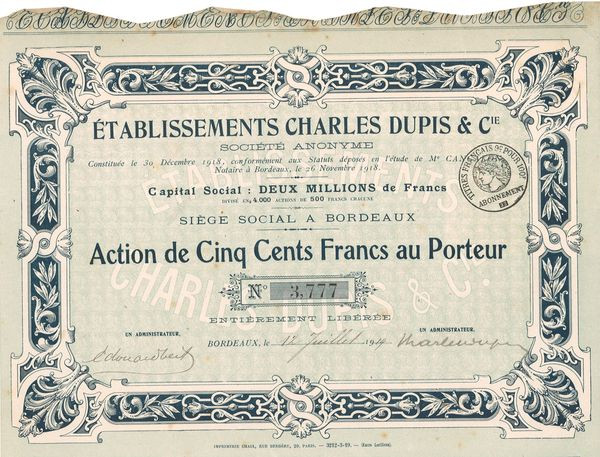 Etablissements Charles Dupis & Cie (Act 500 F)