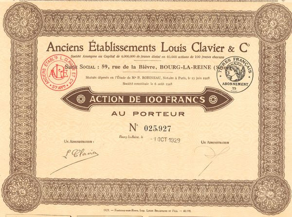 Anciens Etablissements Louis Clavier & Cie (Act 100 F)