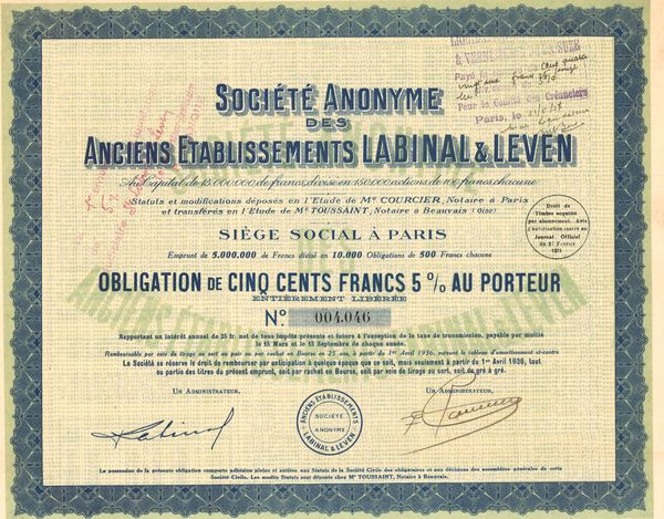 S.A. des Anciens Etablissements Labinal & Leven (Obl 500 F 5%)