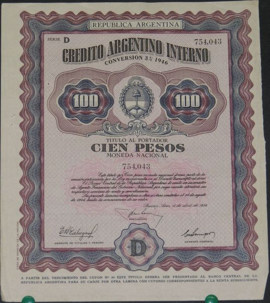 Credito Argentino Interno Conversion 3 % 1946 (100 Pesos)