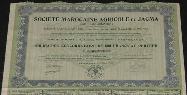 Sté Marocaine Agricole du Jacma (en liquidation) (Obl Concordataire)