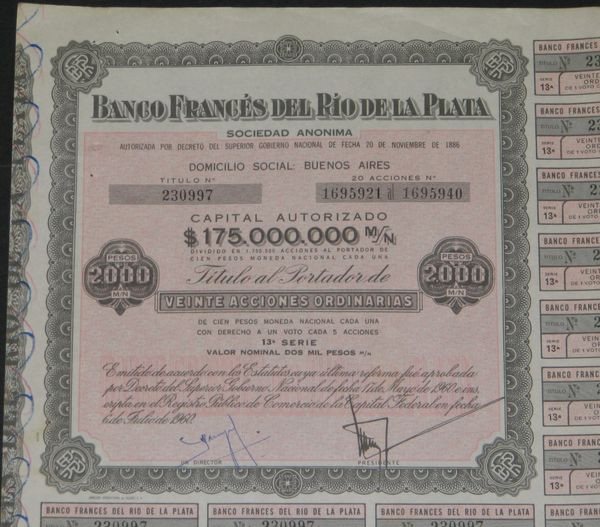 Banco Frances del Rio de la Plata (20 Act grise)