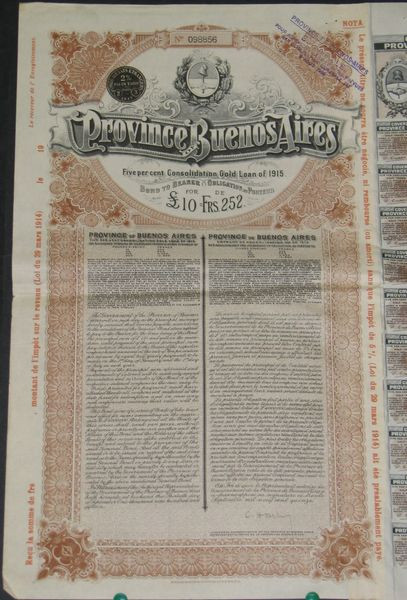 Province of Buenos Aires - 5 % Consolidation Gold Loan of 1915