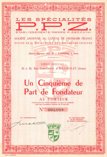 Les Spécialités P.P.Z - Etablissements Pierre P. Zecchini (1/5ème de PF)