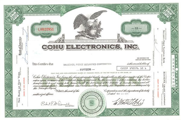 Cohu Electronics Inc. (Titre 15 Act 1$)