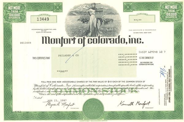 Monfort of Colorado Inc (Certif Nomin Titre 01 Act 1$)