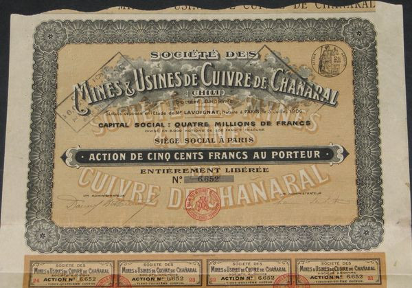 Sté des Mines & Usines de Cuivre de Chañaral (Act 500 F)