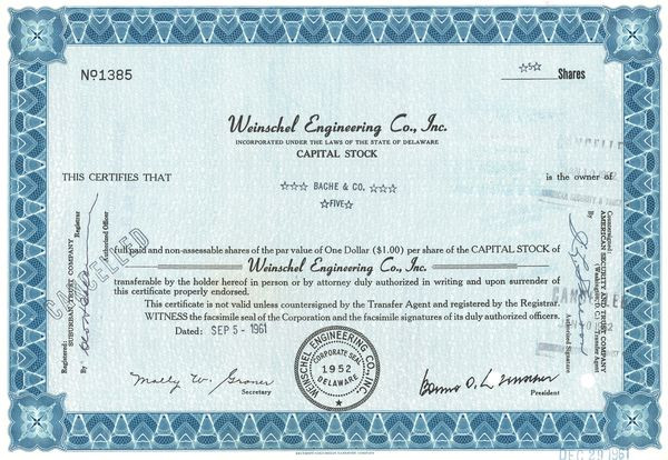 Weinschel Engineering Co. Inc. (Titre 05 Act 1$)