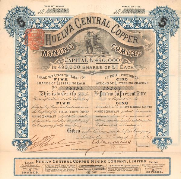 Huelva Central Copper Mining Cy Ltd (Titre 05 Act 1£)