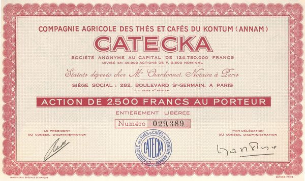 Cie Agricole des Thés et Cafés du Kontum (Annam) CATECKA (Act 2500 F)