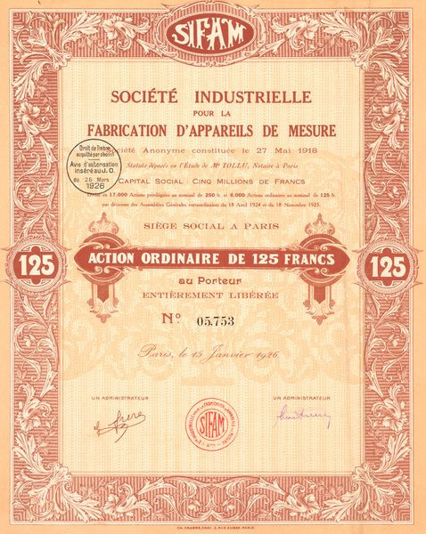 SIFAM - Sté Industrielle pour la Fabrication d'Appareils de Mesure (Act O 125 F)