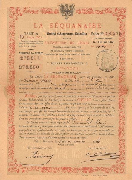 La Séquanaise Sté d'Assurances Mutuelles pour la Reconstitution des Capitaux (Act 100 F)